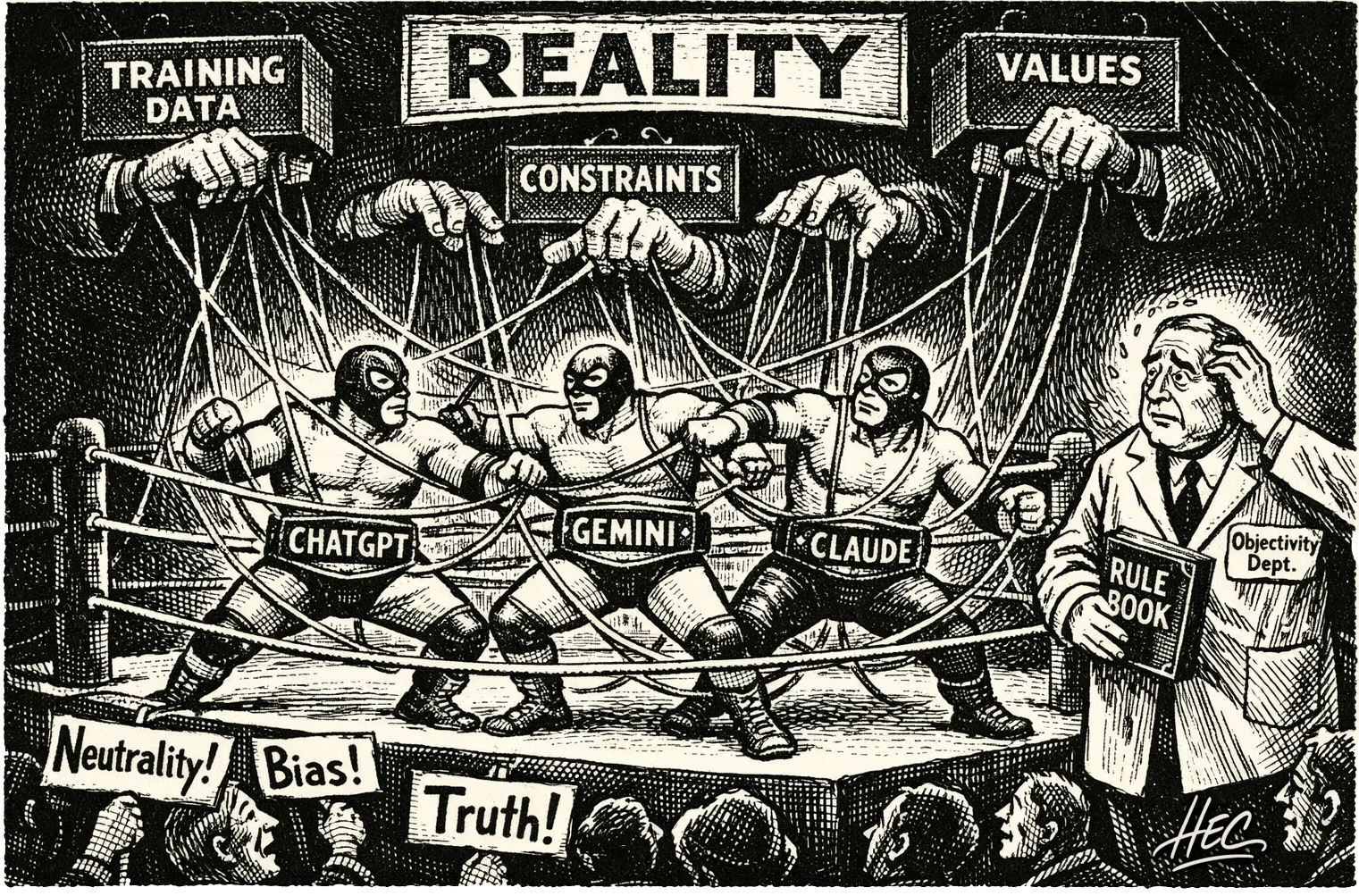 If we can’t see something without our intent modeling it, then we see through our discrimination, and anything and everything we create that resembles our mental process has built-in our biases: how we segment reality. AI is the artificial development of one of our mental faculties: the recognition of patterns. This is the basis, but how we put that recognition is what distinguishes the different large language models (LLMs) from each other.